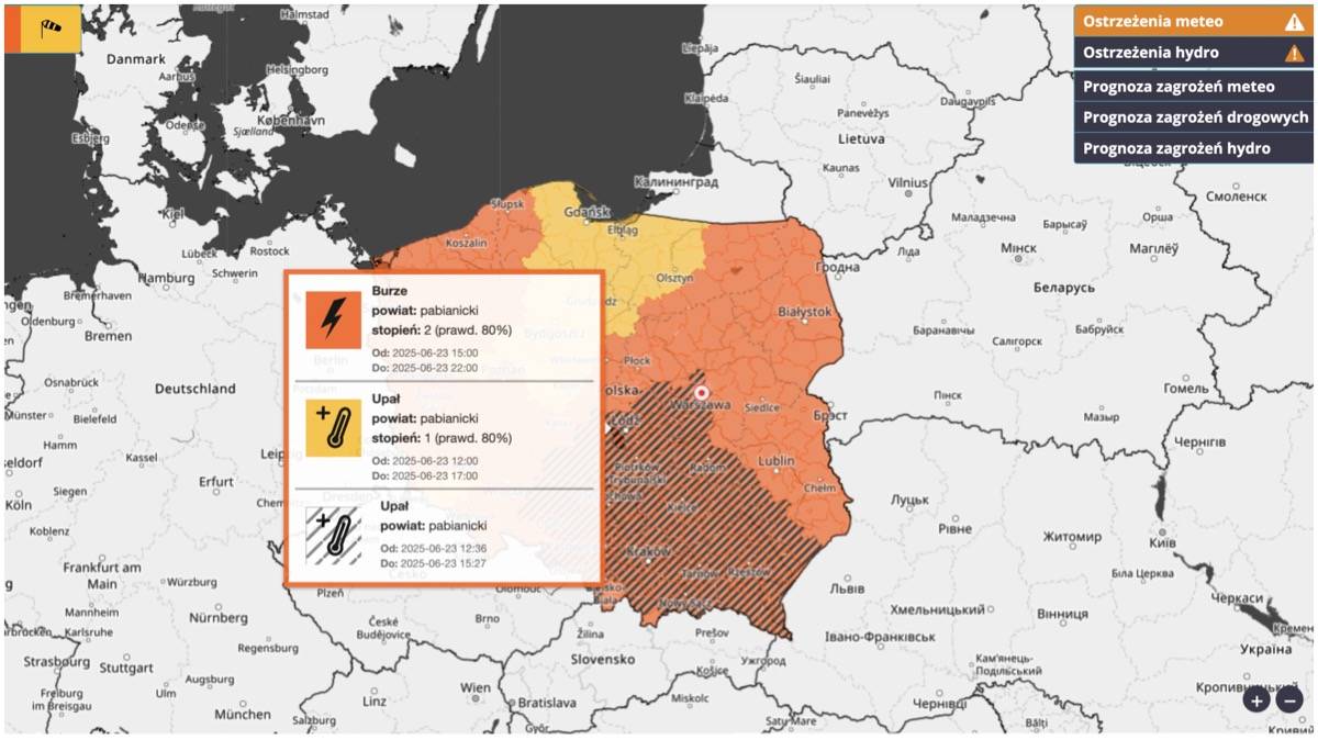 Synoptycy IMGW podkreślają, że burze mogą mieć gwałtowny przebieg i charakteryzować się dużą lokalną zmiennością. Zalecana jest więc szczególna ostrożność i śledzenie bieżących komunikatów meteorologicznych. Ostrzeżenie burzowe obowiązuje dziś od godziny 15:00 do 22:00, natomiast alert dotyczący upałów – od godziny 12:30 aż do 17:00.