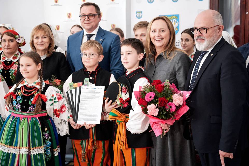 - A folklor to jest opowieść o nas samych. I to od nas zależy, jak ją napiszemy. Trzymam mocno kciuki, abyście napisali piękną historię, którą z dumą będziemy przekazywać kolejnym pokoleniom - mówiła marszałek Joanna Skrzydlewska zwracając się m.in. do twórczyń ludowych i dzieci z zespołu ludowego Koderki, które towarzyszyły władzom Łowicza przy podpisaniu umowy na dofinansowanie Centrum Folkloru.