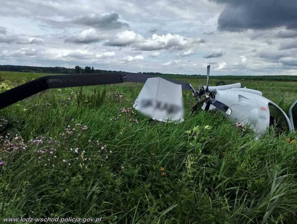 Wypadek lotniczy w Łódzkiem: Wiatrakowiec runął na ziemię, w maszynie były dwie osoby [Foto]